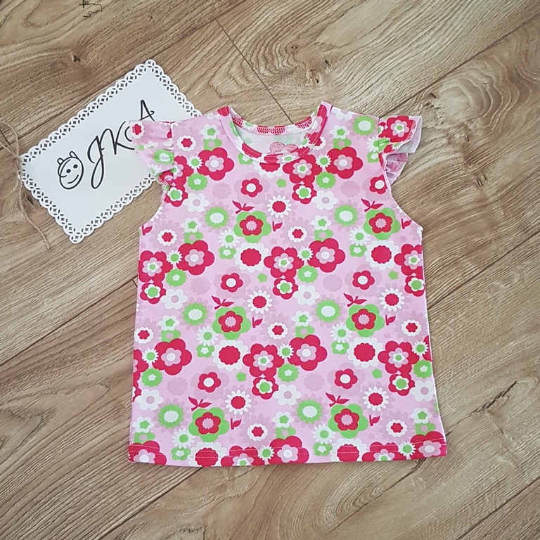 Dievčenské tričko s volánikmi a kvetinovým motívom ako stvorené na horúce letné dni.